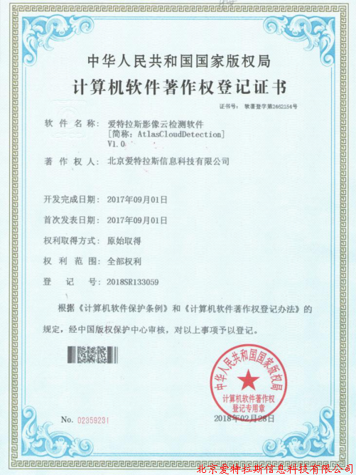 近日,北京愛(ài)特拉斯信息科技有限公司可謂是喜事連連,佳績(jì)不斷!繼上月《ATLAS空間數據轉換軟件》順利通過(guò)由國家測繪產(chǎn)品質(zhì)量檢驗測試中心組織的國土資源空間數據2000國家大地坐標系轉換軟件測評后,《遙感影像快速云檢測》又榮獲國家版權局計算機軟件著(zhù)作權,標志著(zhù)愛(ài)特拉斯又一次通過(guò)自主研發(fā)取得的獨立知識產(chǎn)權得到了權威的認可和肯定?