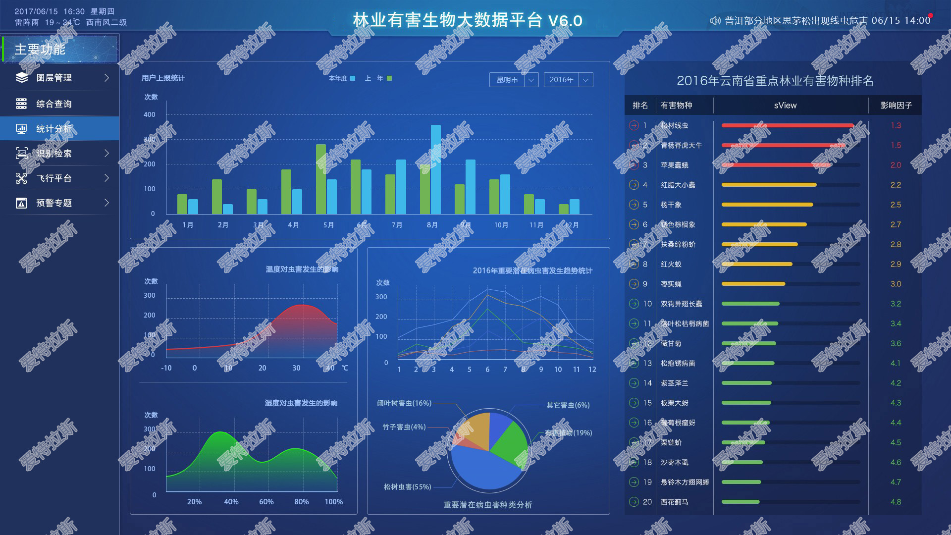 林業(yè)有害生物診斷預警平臺提供大數據預警監測分析,為測報、防控提供決策性依據。