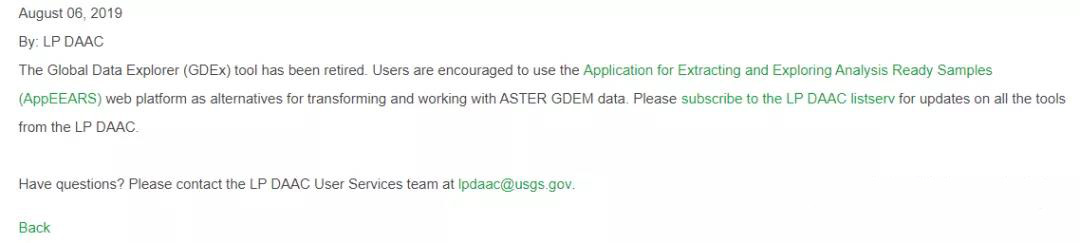 ASTER GDEM對全球用戶(hù)免費開(kāi)放下載使用,目前國內提供的下載源基本都是v1版本數據,建議大家直接下載v3版本的數據進(jìn)行研究應用。NASA和METI提供的GDEx(The Global Data Explorer)在2019年8月6日已經(jīng)關(guān)閉