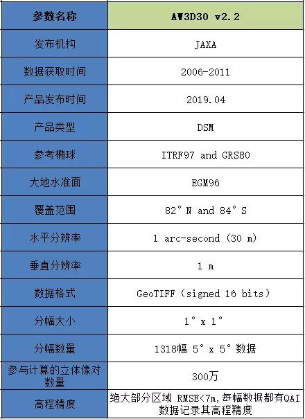 從2016年開(kāi)始,JAXA每年都會(huì )發(fā)布一個(gè)新版本的AW3D30產(chǎn)品,目前最新的是2019年4月發(fā)布的AW3D30v2.2,其基本屬性如下。