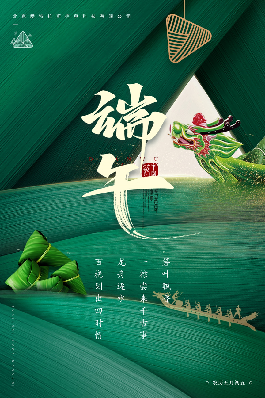 五月五,粽飄香,艾葉清,麥浪黃,端午呈祥,龍舟一盞,乘八方幸福之風(fēng),破四海好運之浪,愛(ài)特拉斯祝各位合作伙伴、全體員工端午安康!