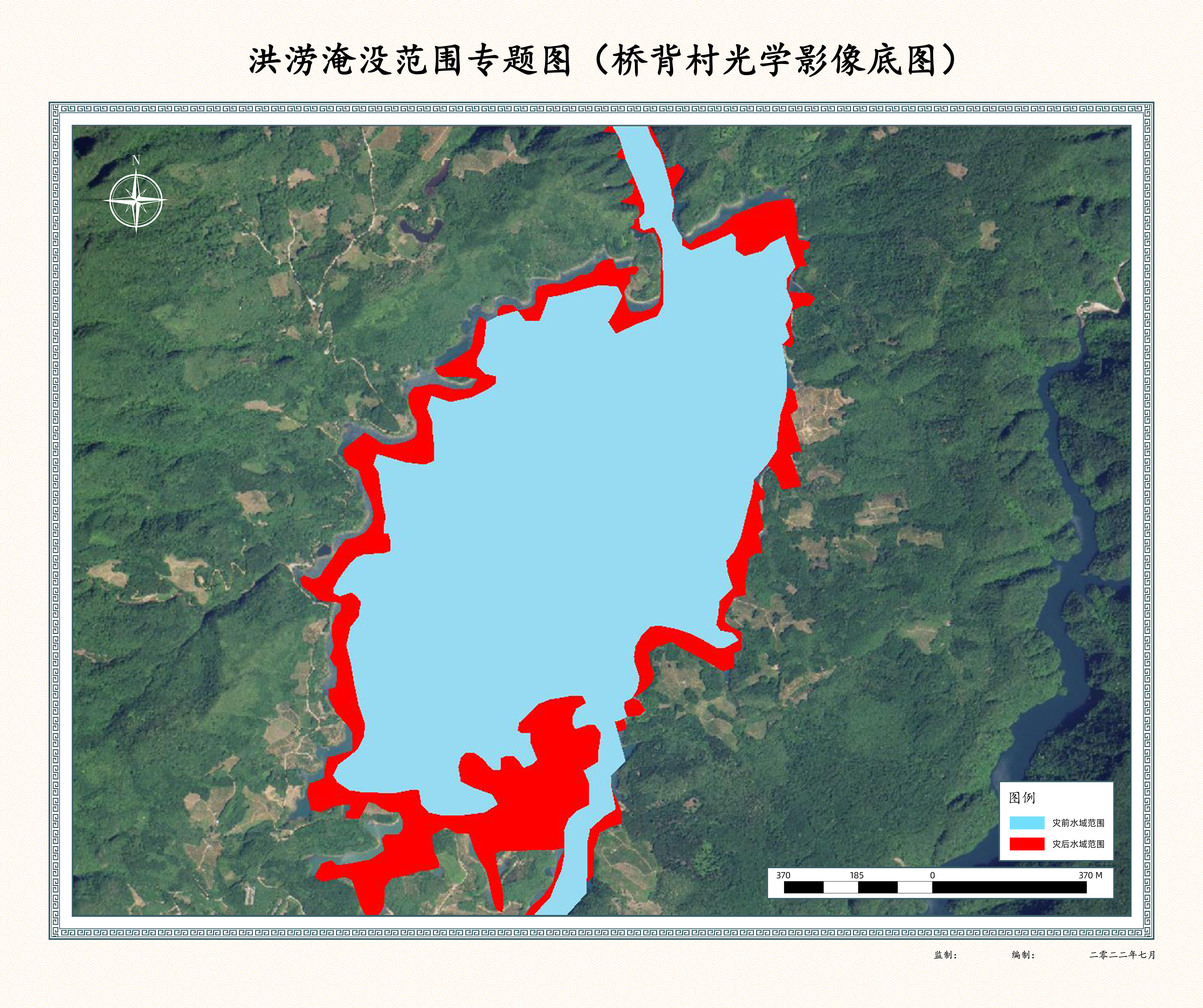 橋背村洪澇淹沒(méi)范圍專(zhuān)題圖(光學(xué)影像底圖)