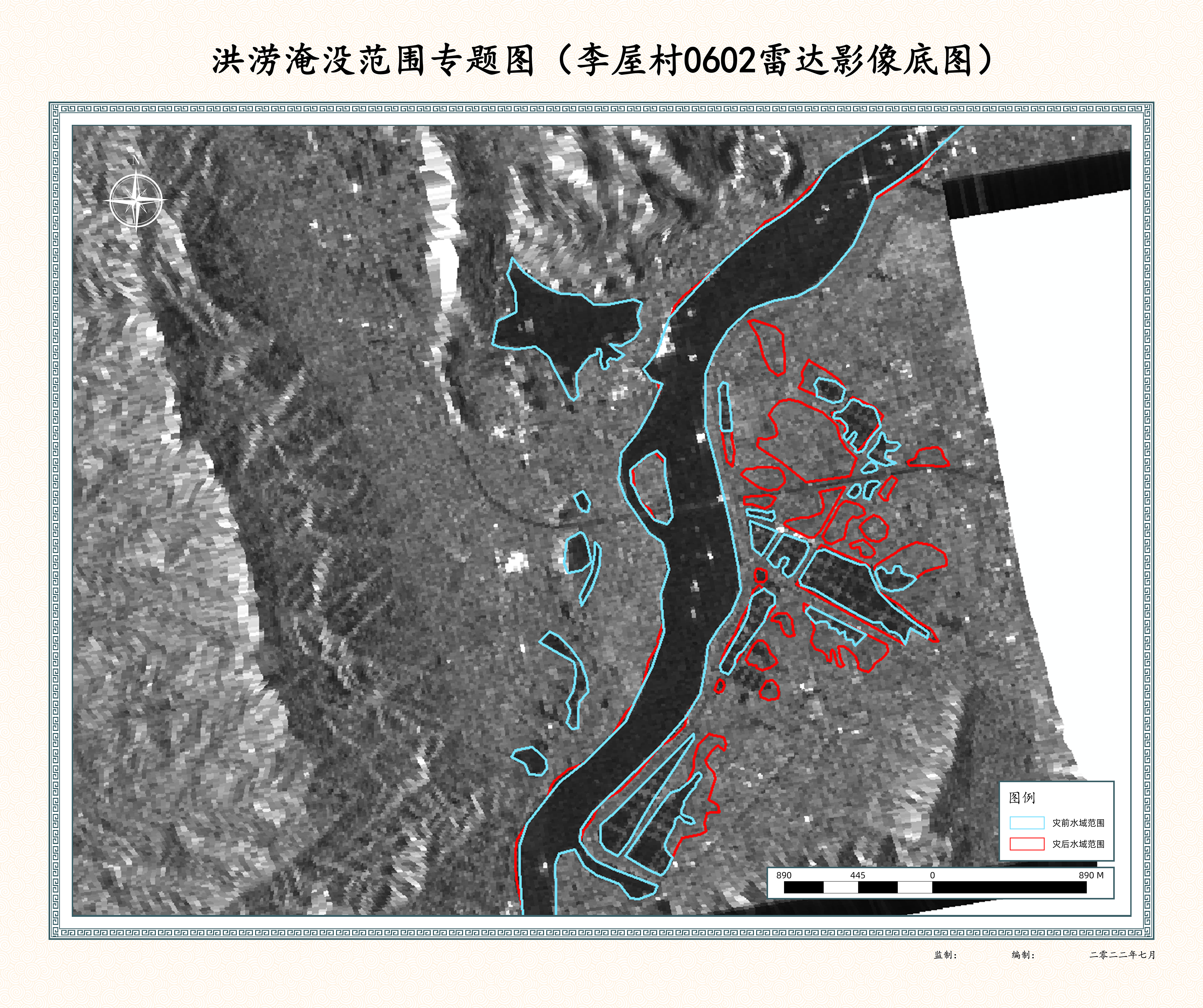 李屋村6月26日淹沒(méi)范圍專(zhuān)題圖(雷達影像底圖)