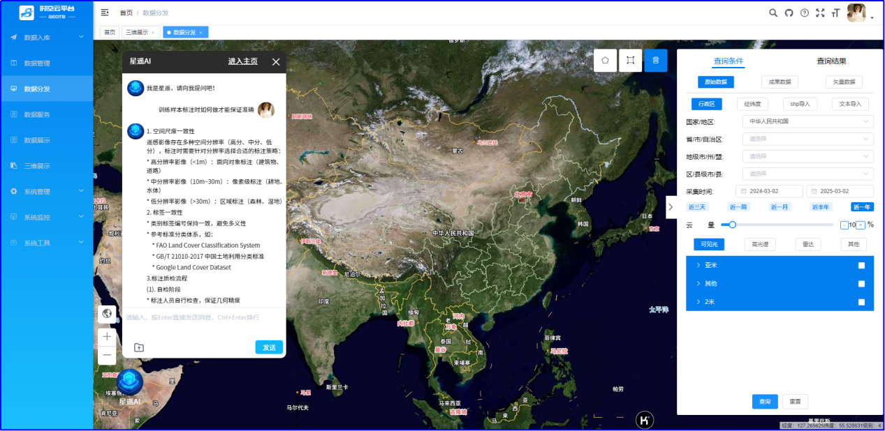 自然語(yǔ)言驅動(dòng)交互:支持語(yǔ)義化檢索遙感數據與知識問(wèn)答,例如存量數據查詢(xún),時(shí)序數據分析等。?