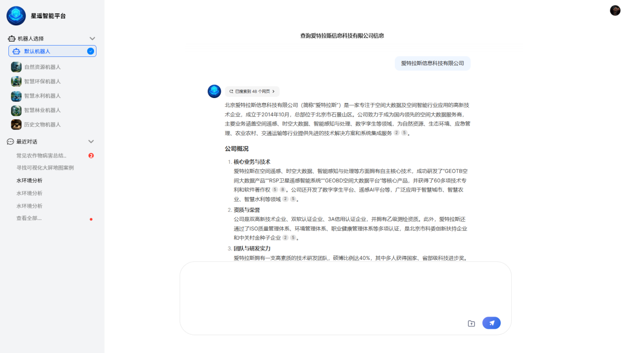 愛(ài)特拉斯積累近10年的行業(yè)資料和數據資源,能夠快速通過(guò)大模型構建行業(yè)智能體,賦能自然資源、林業(yè)、農業(yè)、環(huán)保、文物等,能夠為行業(yè)的發(fā)展的注入新的元素?;谛沁b大模型構建了智能知識庫體系,實(shí)現了專(zhuān)業(yè)知識的智能解析與秒級響應。當知識庫遷移到DeepSeek大模型后,其語(yǔ)義理解與多輪對話(huà)能力得到了顯著(zhù)提升,從而為用戶(hù)提供了更加智能準確的語(yǔ)義檢索、跨文檔的知識串聯(lián)和動(dòng)態(tài)知識圖譜的構建。